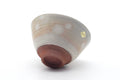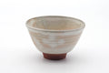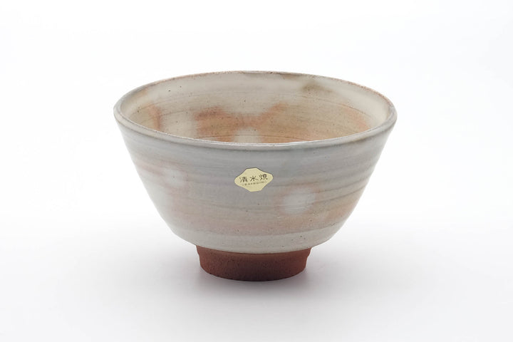 This lovely Kiyomizu-yaki chawan (matcha bowl) features a beige and pink glaze with a spotted pattern called gohonte.