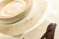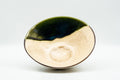 Oribe-yaki (織部焼) is a type of Japanese pottery known for its free flowing glazes and asymmetrical, hand-formed shape. Dating from the 16th century, Oribe ware exists in many styles. One of the most famous is Ao-Oribe or Green Oribe, which is often decorated with geometric patterns painted with an iron glaze and then partially covered in a vibrant green copper-sulfate glaze which contrasts against the white background.