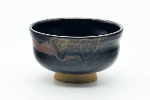 This hatazori-gata chawan (matcha bowl) features a beautiful black and bronze drip-glaze over its upper body.