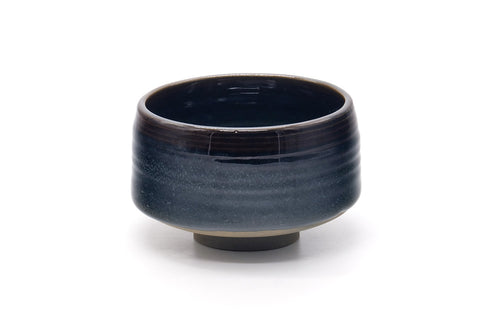 This chawan (matcha bowl) features a sleek black and brown glaze with subtle speckles towards the base, as well as a chadamarie tea pool.