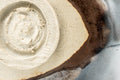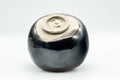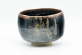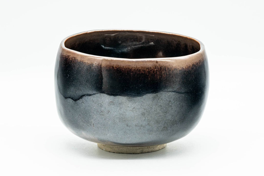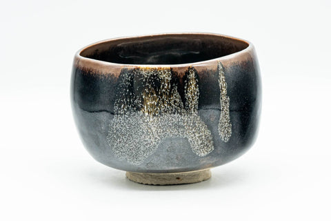 This wabi-sabi wa-nari chawan (matcha bowl) features a black and brown hare's fur glaze. Made by 久.