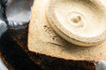 The inside of the bowl has a cha-damari (indentation where leftover tea pools) formed from concentric circles.