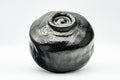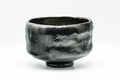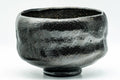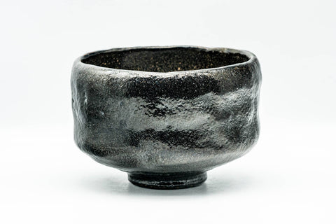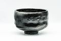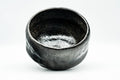This hantsutsu-gata kuroaku chawan (black raku matcha bowl) features a deep black glaze.