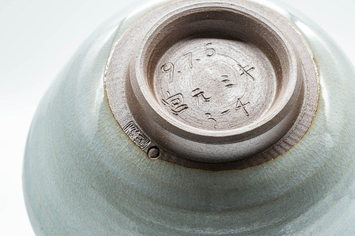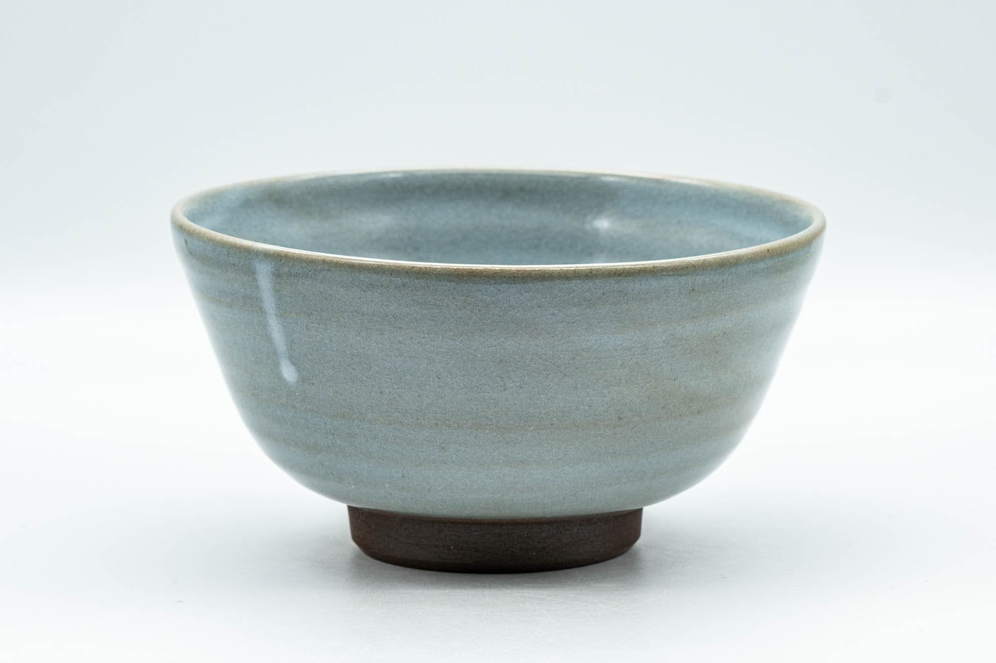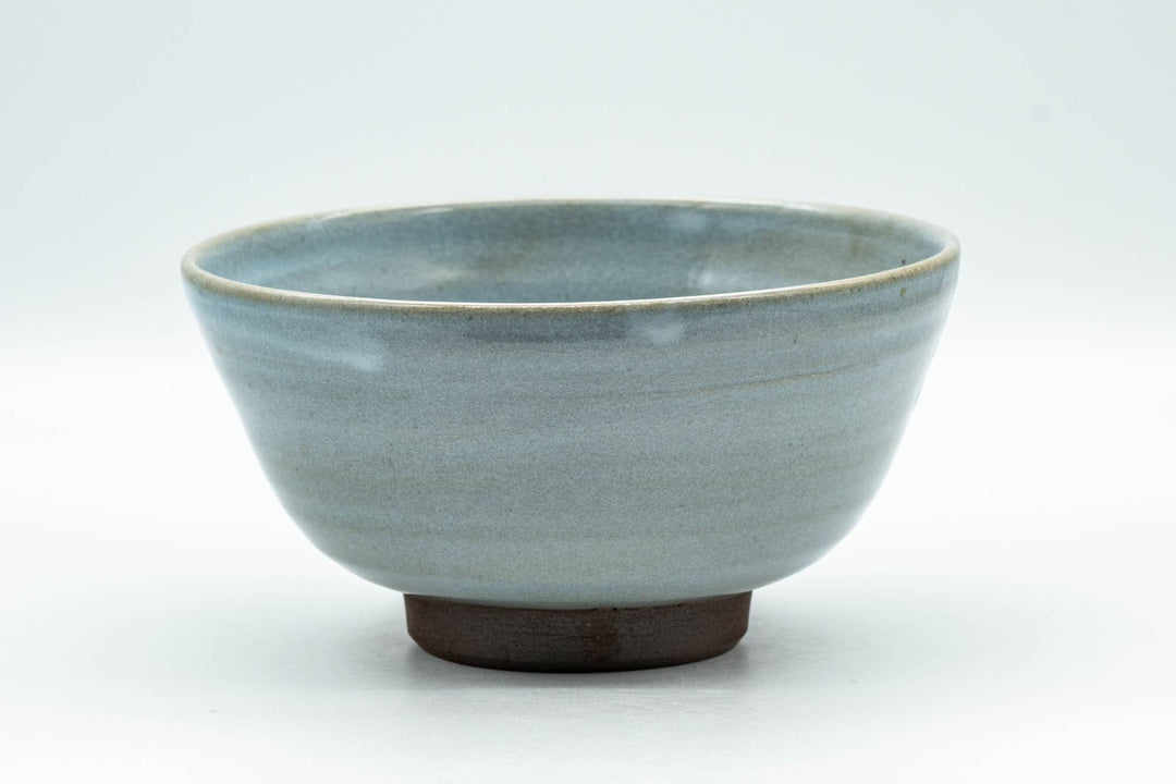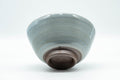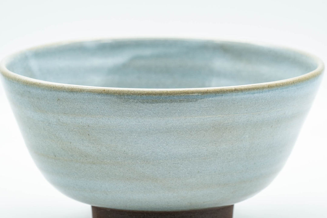 This ido-gata chawan (matcha bowl) features a crazed powder blue celadon-style glaze.