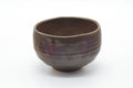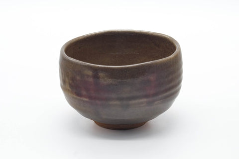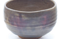 This wabi-sabi chawan (matcha bowl) features a handformed body decorated with a brown and purple-tinted glaze.