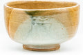 This hantsutsu-gata chawan (matcha bowl) features a light brown glaze decorated with a milky white semi-sphere.