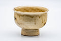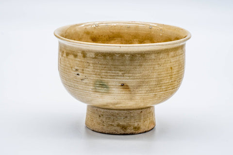 This bajyohai Seto-yaki chawan (matcha bowl) features a crazed, dramatic ki-seto yellow drip-glaze.