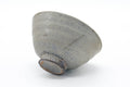 This beautiful Ido chawan (matcha bowl) is made in the O-ido (大井戸 - large Ido) style, and as such has a roughly conical shape and a tall bamboo node-shaped foot (竹の節高台 - takenofushi koudai). Like most great Ido chawan, this bowl has a subtle spiraled shape with gentle rokurome (ろくろ目 - potters' wheel marks) which shows the flow of the potter's fingers as they shaped the piece on the wheel, and also exhibits beautiful crazing (貫入 - kannyuu) throughout the glaze, along with glaze crawling called 'kairagi' (かいらぎ/梅花皮 - plum flower texture) on and around the koshi and foot. This unique glaze texture is highly praised among Ido chawan collectors. The glaze itself is a warm grey, with a large dark patch in the mikomi, and smaller dark patches around the foot.