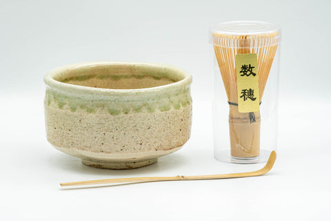 The "Kazuho Chasen" (数穂茶筅) and matching chashaku are made with white shirotake bamboo.