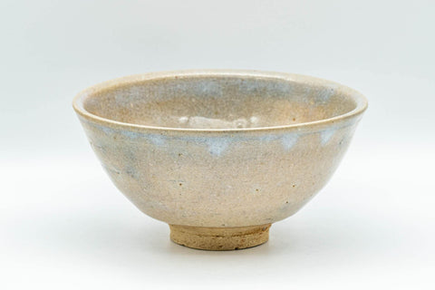 This sugi-nari Hagi-yaki chawan (matcha bowl) features a beige glaze with a white drip-glaze over the lip.