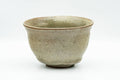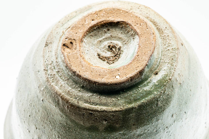 This wabi-sabi chawan (matcha bowl) features an abstract-shaped clay body with an earthy grey glaze.