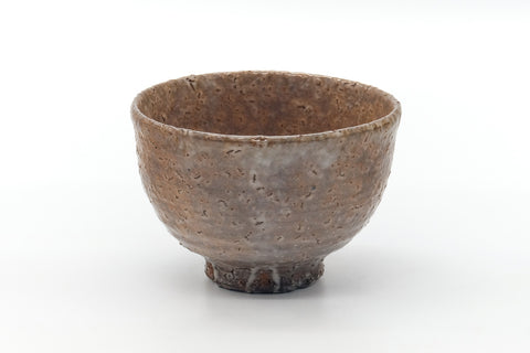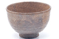 This beautiful komogai-nari Hagi-yaki chawan (matcha bowl) has a subtle spiraled shape with gentle rokurome (ろくろ目 - potters' wheel marks) which shows the flow of the potter's fingers as they shaped the piece on the wheel, and an intricate, earthy brown textured glaze.