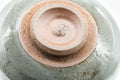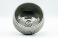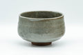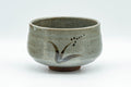This hantsusu-gata chawan (matcha bowl) features a gray-green glaze decorated with a flower.