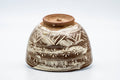 Japanese Matcha Bowl - Brown Chrysanthemum-stamped Mishima Wan-nari Chawan - 425ml