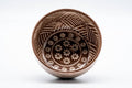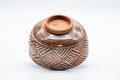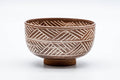 This Kiyomizu-yaki chawan (matcha bowl) features interior floral decorations and exterior geometric patterns with a white-inlayed mishima glaze.