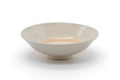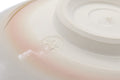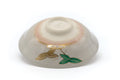 This hira-gata Kyo-yaki chawan (summer matcha bowl) features a classic beige and pink glaze decorated with green and gold leaves. It's quite shallow and best suited for experienced matcha whiskers. Made by 中村与平.