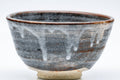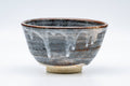 This Mino-yaki chawan (matcha bowl) features a grey and milky white drip-glaze.