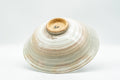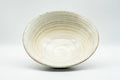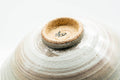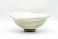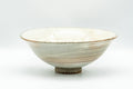 This shallow summer chawan (matcha bowl) features a sophisticated grey brush stroke hakeme glaze with pink accents.