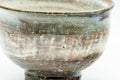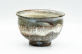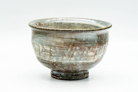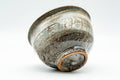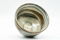 This komogai-nari chawan (matcha bowl) features a textured grey glaze decorated with a milky white hakeme brush stroke.