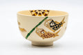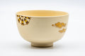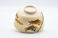 This wan-nari Kyo-yaki chawan (matcha bowl) features a smooth beige glaze decorated with two fish on bamboo.