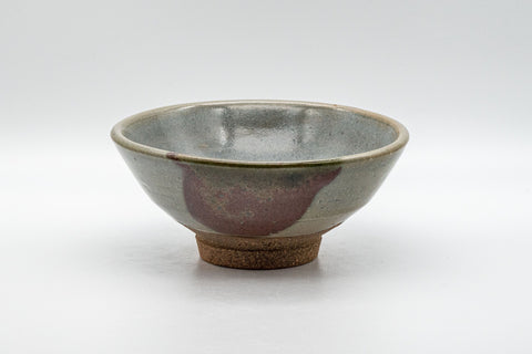 This hira-gata chawan (matcha bowl) features a fine grey glaze with a patch of red and green. Its wide, shallow shape allows the tea to cool quickly which makes it perfect for warmer summer months.