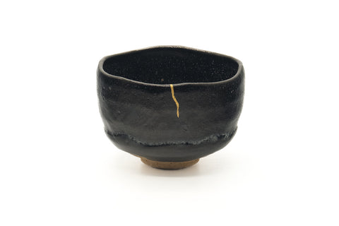 Once damaged, this chawan has been repaired with traditional kintsugi that has been gold powdered.