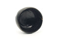 This Kuro-Raku chawan (matcha bowl) has a open hantsutsu-gata shape with glazed completely in a deep, featureless black, representing the epitome of the wabi aesthetic as put forth by Sen-no-Rikyū (千利休). Stamped Raku (楽), potentially by a Raku family member.