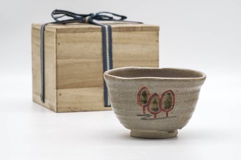 This chawan was made in 1987 by Kizu Toizumi (木津豊泉) to the Imperial Poetic Theme (御題・勅題 - gyodai/chokudai) of the year: 木 (ki - tree) and comes in its original kiribako (桐箱 - wooden paulownia box.