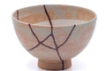Kintsugi (金継ぎ - gold joinery) is a ceramic repair technique in which chips, cracks, and broken pieces are repaired with urushi lacquer, which is either mixed or dusted with precious metal powder, typically gold or silver. Rather than hiding the damage, the use of precious metals highlights the flaws, which tells the story of the item’s wear and repair over time, and ties into the Buddhist concept of mushin (無心 - no mind) which embraces such imperfection.