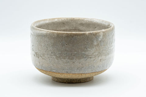 This large hantsutsu-gata chawan (matcha bowl) features a sleek grey glaze with a subtle white over-glaze around its lip.