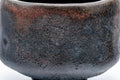 This unique kuro-raku chawan (matcha bowl) features a heavily textured matte black surface with a patch of rust red on the shōmen (正面 - face/front). The matte surface is reminiscent of some of Chōjiro works and the handbuilt nature of the bowl makes it very comfortable to hold and drink from.
