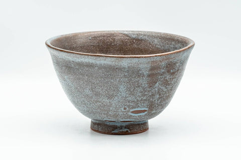 The wabi-sabi chawan (matcha bowl) features a milky blue and grey glaze.