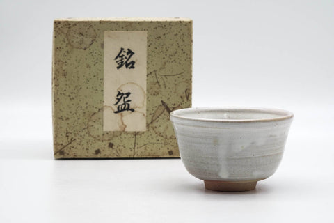 This chawan (matcha bowl) features a milky white drip-glaze. Dimensions:11.6cm (4.6in) - width6.8cm (2.7in) - height250ml - capacityCondition: ExcellentThis vintage Japanese item ships from the United States