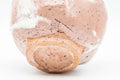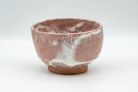 This wabi-sabi chawan (matcha bowl) features a pink and white shino glaze.