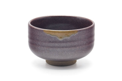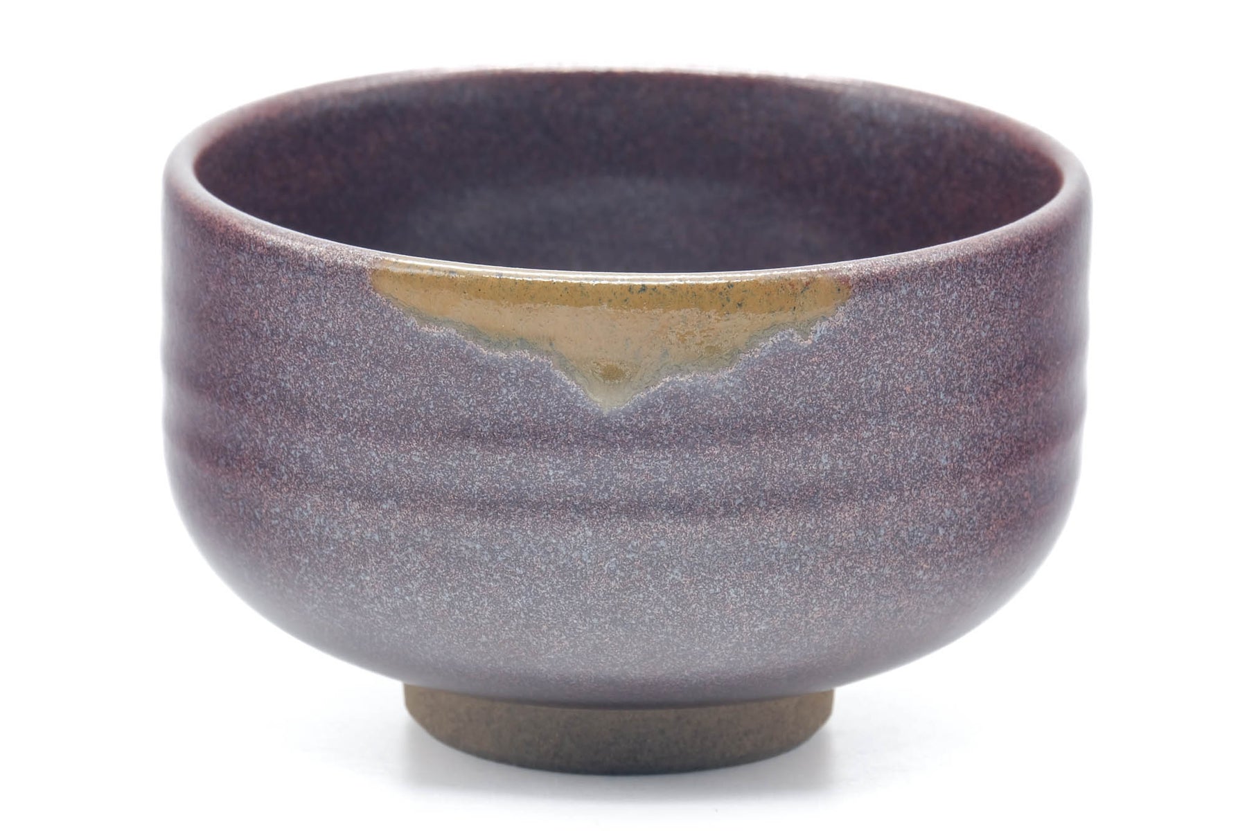 This elegant, spiraling chawan (matcha bowl) features a purple glaze with a subtle sparkle and yellow drip. Plus, a chadamarie at its base to pool the last of your tea.