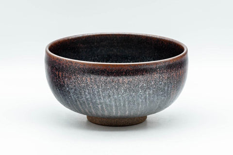 This wan-nari chawan (matcha bowl) features a stunning metallic red tenmoku glaze.