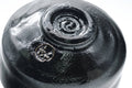 One of Japan's most recognisable styles, Raku-yaki (楽焼) or Raku ware was developed by famous tea master Sen-no-Rikyu in the late 16th century. Perhaps inspired by the recently created 引き出し黒 (hikidashi-guro) technique used to produce the Seto-guro style of black chawan, Rikyu collaborated with tile-maker Chōjirō to produce a new style of ware for use in the tea ceremony. Hand-formed from porous clay rather than wheel-thrown, Raku chawan are then coated in a lead glaze, fired at low temperatures, and removed from the kiln while still glowing hot. Most Raku chawan exist in two styles: Aka-raku (red raku), and Kuro-raku (black raku).