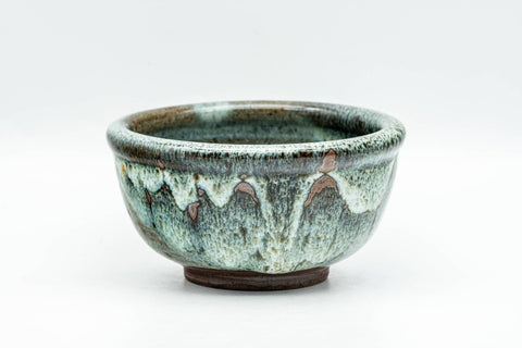 This small chawan (matcha bowl) features a stunning blue and white drip-glaze. Given its size, this bowl would be best suited for an experienced whisk handler.