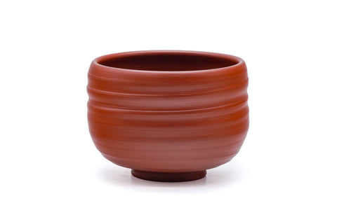 This expertly crafted hantsutsu-gata. Tokoname-yaki chawan (matcha bowl) is thrown from the iconic Tokoname shudei (朱泥) clay, known for its brilliant red colour and ability to subtly reduce the astringency of tea. The chawan was left unglazed to show off this clay's natural charm.