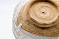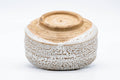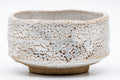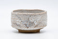 This small badarai Mino-yaki chawan (matcha bowl) featues a white shino glaze textured with pinholes—called 'suana' (nest holes) or 'yuzuhada' (yuzu skin) in Japanese