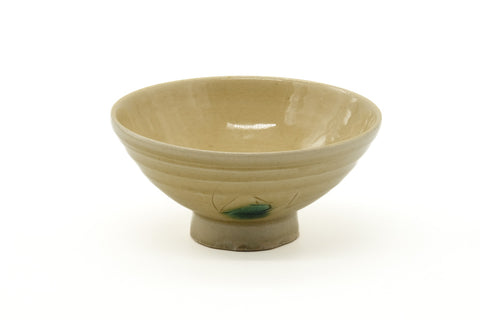 This Ki-Seto chawan (matcha bowl) features a classic yellow glaze with a small touch of green.