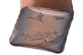 This set of five vintage square copper meimeizara (銘々皿 sharing plates) are each decorated with a motif featuring soaring egrets and a pine tree.