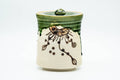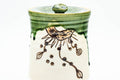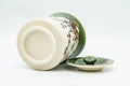 This Oribe-yaki mizusashi (water container) features a beige and green drip-glaze decorated with a floral motif.