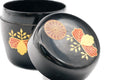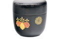 This black lacquer natsume is decorated with classic pairing of chrysanthemums representing the Japanese Imperial family and paulownias, originally the mon (crest) of the Toyotomi clan but now used to represent the Japanese government.
