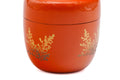 This red lacquer natsume is decorated with branching plant motif in a gold maki-e (蒔絵) gradient.