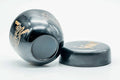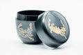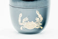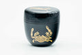 This black urushi lacquer natsume (matcha caddy) is decorated with gold crab motifs across its body and lid.