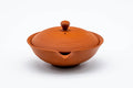 In Japanese, 絞り出し急須 (shiboridashi kyuusu) roughly translates to "squeeze-pour teapot", as the design of the teapot allows you to squeeze every last drop of the liquor from the leaves. Similar in construction to a chinese gaiwan, shiboridashi are the simplest type of Japanese teapot, consisting of only a spouted bowl and a lid. Despite this simplicity, shiboridashi are very difficult to make well. Unlike kyusu and houhin, shiboridashi have no filter, instead using the narrow gap between the lid and the body to separate the liquor from the leaves. Additionally, most shiboridashi also have fine grooves carved into the bowl at the spout which helps keep the leaves from being poured out. On most shiboridashi, the lid rests on a lip just like with kyusu and houhin. This means that the gap at the spout remains at a fixed size. However, many high-end, handmade shiboridashi such as this one have no such lip, allowing this gap to be adjusted.