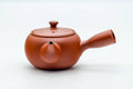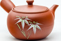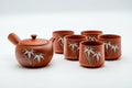 This Tokoname-yaki tea set includes one mould-made kyusu (side-handled teapot) and five yunomi (teacups) each made from red shudei clay and decorated with bamboo motifs. The teapot's built-in ceramic debeso filter is perfect for naturally straining tea.