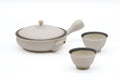 Maekawa JunzōThis tea set includes an elegant hira-gata Tokoname-yaki kyusu (teapot) made from a stylish white clay in a clean, modern, minimalist style, with a classy gradient from to at the lip.