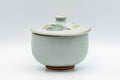 The teapot has a ceramic strainer that won't impart a metallic taste to your tea while the lidded teacup will keep the heat in and the dust out.
